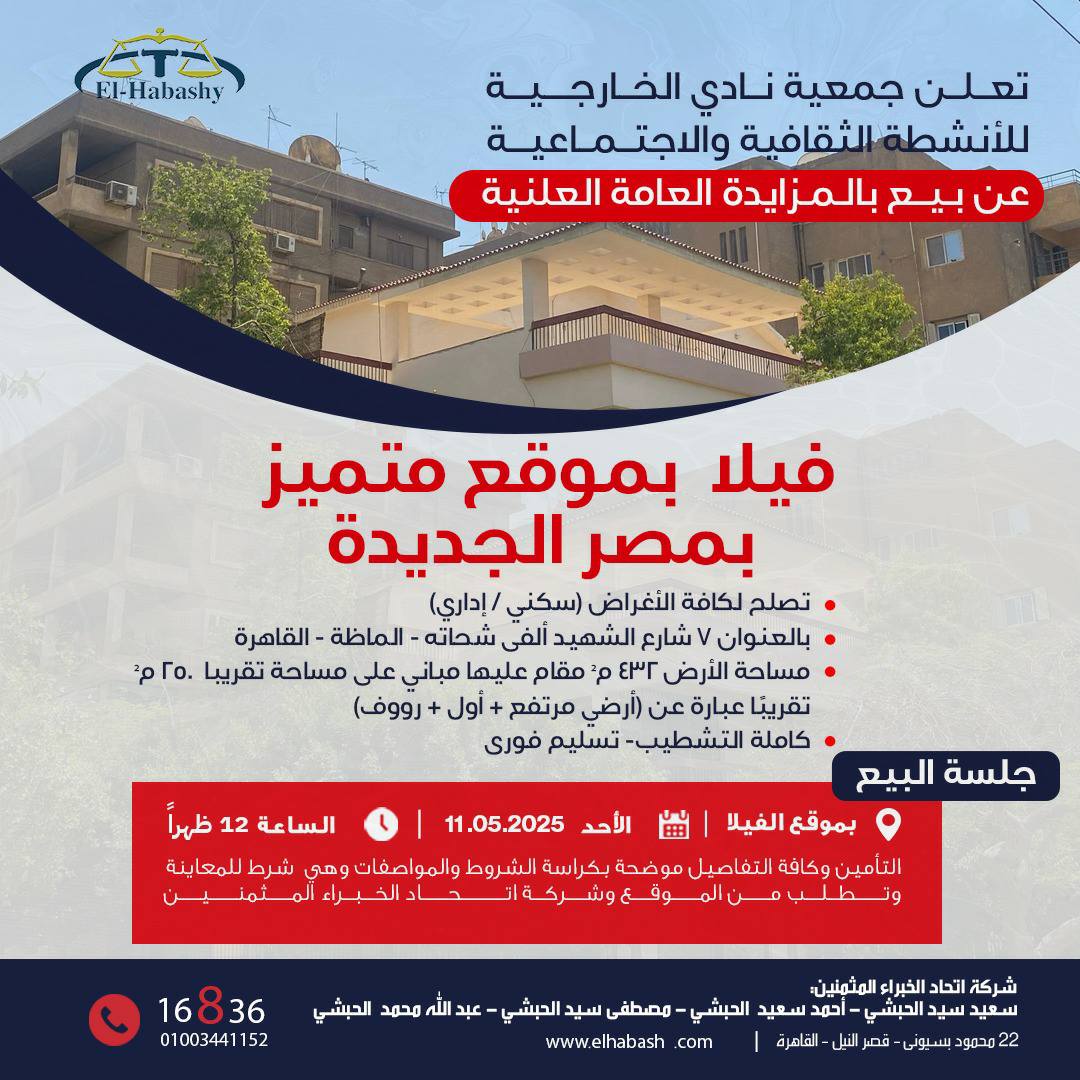 📌 مكان الجلسة: بموقع الفيلا 7 شارع الشهيد الفي شحاتة- الماظة- مصر الجديدة